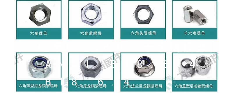 十字槽沉頭自攻螺釘 螺釘頭部形狀有圓頭、平頭、半沉頭及沉頭等。頭部的槽有一字、十字等形式、末端形狀有錐端和平端兩種。多用于連接金屬薄板,輕合金或塑料零件。在被連接件上可不預先制出螺紋,在連接是利用螺釘直接攻出螺紋。6 六角螺母 六角螺母 根據螺母厚度不同,分為標準型和薄型兩種。薄螺母